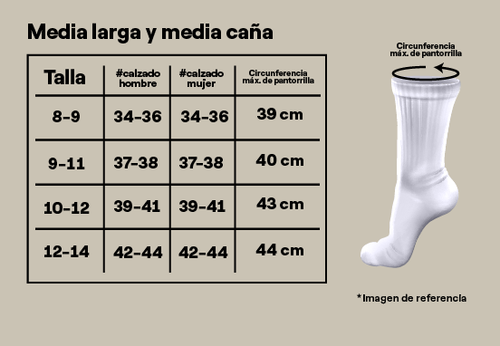 | Talla medias | 8 – 10, 9 – 11, 10 – 12 |